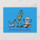 Cartão Postal Feliz desenho animado de robôs bonitos em fundo az