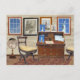 Uma cena de um estudo que se debruça sobre uma visão lateral da Estátua da Liberdade mostra impressões antigos na parede, móveis antigos - incluindo um globo - e sobre a mesa, alguns cartões relacionados ao 4 de julho que foram recebidos ou estão sendo preparados para transmitir os melhores desejos.