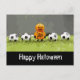 Cartão Postal Feliz Dia das Bruxas de Futebol com bolas de grama