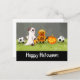 Cartão Postal Feliz Dia das Bruxas de Futebol com bolas de grama