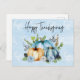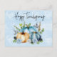Cartão Postal Feliz Dia de Ação de Graças Azul Pumpkin