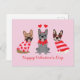 Uma bela ilustração de três Bulldog Franceses vestidos para Dia de os namorados. Perfeito para amantes de cães.