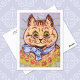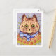 Um cartão-postal de arte com uma ilustração animal de um gato de mesa de laranja de olhos verdes adornado com uma terra de flores margaridas e arco azul, Happy Flower Cat, criado pelo artista inglês Louis Wain (1860-1939). Wain foi um ilustrador renomado durante o período art nouveau. Ele é celebrado por seus retratos distintos e encantadores de gatos. Este retrato é característico de seu estilo único e carinhoso.