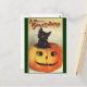 Os gatos vão chegar a todos os lugares, uma bela placa de saudação de halloween de um gato sentado numa abóbora.