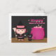Cartão Postal Feliz Halloween, Bruxa Rosa Bonita e Gato Negro