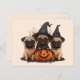 Cartão Postal Feliz Halloween Pugs Jack O Lanternas