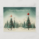 Cartaz de Natal feliz com árvores de Natal, minimalistas, ornamentos e arte caprichosa de inverno. Personalize-o usando 'Personalize esta modelo' ou o recurso Editar.