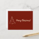 Este postal apresenta um design clássico e elegante para enviar suas saudações festivas nesta temporada de festas. A frente exibe uma árvore de Natal minimalista, esboçada em um branco delicado que sutilmente contrasta com o rico fundo vermelho profundo, capturando as cores tradicionais do feriado. No topo da árvore, está uma estrela brilhante, que vai até a base da árvore, criando um símbolo simples, mas pungente, da alegria de Natal. A saudação "Feliz Natal!" é apresentada de forma destacada num guião fluente e gracioso que complementa o design linear da árvore. Esta mensagem eterno transmite calorosamente o espírito da estação aos amigos, à família ou aos colegas. Todos os aspectos deste cartão postal, desde os elementos visuais frontais até a mensagem sentida no verso, são totalmente personalizáveis. Isso permite que um toque pessoal, como uma mensagem personalizada, seja adicionado, fazer o cartão de uma correspondência única e especial que os destinatários certamente apreciarão. Quer você esteja querendo enviar uma saudação tradicional ou algo mais personalizado, este cartão-postal oferece uma canvas perfeita para expressar seus desejos de feriado.