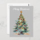 Cartão postal de Natal com uma linda ilustração de uma árvore de natal em aquarela