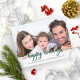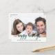 Um simples cartão de Natal de caligrafia, fácil de personalizar com sua foto, a caligrafia de texto verde é perfeita para fotos horizontais claras.