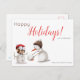 Cartão Postal Feliz Natal de Snowman e Owl