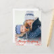 Cartão de Natal simples e fofo, com fonte vermelha de caligrafia, excelente para fotos leves.