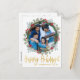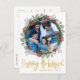 Moderno, simples e elegante, com uma coroa central do Natal, em vermelho, verde e caligrafia "Felizes Feriados", escrita à mão em ouro falso. Personalize com suas próprias fotos e seu nome de família para criar sua saudação exclusiva de xmas.