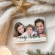 Um simples cartão de Natal de caligrafia, fácil de personalizar com sua foto, a caligrafia de texto verde é perfeita para fotos horizontais claras.