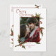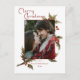 Interpretação festiva e moderna da ilustração holográfica de vintage, com a tipografia de Feliz Natal e um modelo colorido de fotografia holly. A parte traseira apresenta gráficos complementares e saudações sugeridas.
