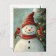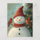 Cartão Postal Feliz Natal saudando Snowman e Cardinhos
