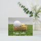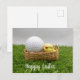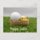 Cartão Postal Felz pascoa de golfe com bola de golfe e galinha