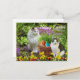 Este cartão-postal foi criado para todos os que amam gatos ou que são cuidadores de gatos selvagens. O cartão contém um gato branco sentado num jardim de flores e outro gato sentado ao lado de uma cesta de Páscoa. As cinzas e o gato branco, juntamente com a Páscoa, careca e os daffodils foram adicionados como uma camada. Este cartão postal de Páscoa de arte de colagem é adorável e será apreciado por qualquer pessoa que goste de gatos.