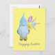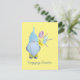 Gnomo do estilo de tomate de aquarelas bonitas com buquê doce de flores em fundo amarelo e texto personalizável de "Felz pascoa".