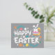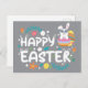Cartão Postal Felz pascoa, Ovos, Coelhinhos E Flores
