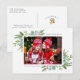 Cartão-postal do Cartões de natal de Fotografia do Quadro de Natal. Todo texto é totalmente personalizável, opção para remover ou adicionar texto. Flores de inverno de aquarela.