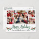 Cláusula de Caligrafia Moderna Script 5 Fotografia Família Colagem Feliz Feriados Cartão postal inclui Watercolor Christmas Holly Berries - Script Verde