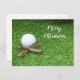 Feriado de Natal de Golfe com bola de golfe e fita de gramado verde Cartão postal