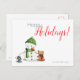 Cartaz bonito com ilustração de um boneco de neve e animais. Se for da sua família ou da sua empresa, os cartões postais são a melhor maneira de cumprimentar a temporada de Férias. Todo o texto neste cartão postal é personalizável. Você pode personalizar ainda mais se quiser adicionar uma mensagem extra na parte traseira ou se quiser alterar as cores e as fontes. Ilustrada e projetada por Patricia Alvarez.