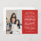 Cartões de natal de fotografia movidos pela tipografia com as palavras "desejamos-lhe um Natal muito feliz e um Feliz ano novo".