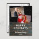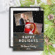 Cartão postal Rustic Dark Wood Snow Holiday 2. Cartão postal de Natal moderno com textura escura de madeira e cor preta de fundo com queda de neve. O design tem um roteiro branco moderno - personalize qualquer texto. O cartão-postal tem duas fotos de colagem - insira suas fotos no modelo. Na parte de trás está um modelo para o endereço do remetente. Comemore as festas com este cartão-postal de Natal chico.