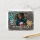 Cartão único, clássico, de moda, bonito e decorativo de Natal sazonal e de saudação de Feliz ano novo. Recortar com amor do texto e da sala para personalizar ou personalizar com uma foto e um nome de família ou nomes de sua escolha. Com o azul azul-turquesa aqua verde-azul e falso-amarelo falso-escamas de neve em uma cinza com aparência curvada a lavoura rustica inspirou a madeira de madeira de madeira de madeira de galpão padrão design. E um poema de saudação de estação personalizável na parte de trás do cartão, incluindo seu endereço de retorno, cidade, CEP e estado.