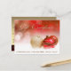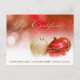 Cartão postal, com o tamanho do certificado de presente de Natal para a sua empresa, para o período de férias. O modelo apresenta três ornamentos de Natal e flocos de neve em fundo vermelho.
