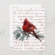 Cartão Postal Feriado Natal Red Cardinho Bird Script Francês