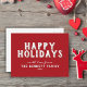 Cartão postal de feriados vermelhos simples modernos. A tipografia branca tem um fundo vermelho - personalize o nome da família e o ano.
