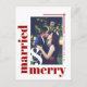 Celebrando seu primeiro Natal como o recém-casado Sr. e Sra.? Você finalmente está enviando cartões de Natal como um e família. Felicite seus entes queridos pelo Feliz Natal com este simples cartão postal fotográfico desenhado com letras ousadas que diz "casado e feliz". Personalize sua mensagem e o endereço do destinatário no verso.
