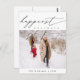 Feriados mais felizes, roteiro moderno, Feliz Natal. Comemore a temporada com este cartão postal de parada de fotos da família, em guião moderno minimalista e gentil. Ele é totalmente personalizável e personalizado com suas próprias mensagens de saudação. Adicione seu endereço de devolução para facilitar a correspondência. É simples, fácil, mas moderno minimalista e festivo. Este é o cartão postal perfeito para enviar seus desejos de feriado.