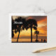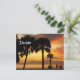 O sol se pondo em Tarpon Springs, Flórida, com uma família brincando ao fundo. O sol estava especialmente vibrante naquele dia com amarelo, laranja, vermelho e cinza se misturando no céu. As palmeiras silhuetadas na praia realmente dão à foto um clima tropical.