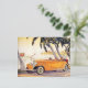 Imagem de viagem de ilustração e transporte de imagem com uma família viajando em um antigo carro conversível laranja ao longo da costa da Flórida. Uma mulher é esqui d'água e palmeiras estão balançando na brisa suave.