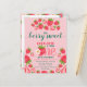 Cartão de Convite para Festa de 1º Aniversário da Morango Doce Rosa