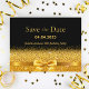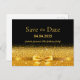 A festa de aniversário elegante, clássica, glamourosa e feminina estilo 60º salva o cartão-postal. Uma fita e um arco de cor dourada, com brilho e brilho de ouro falsa, um pouco de brilho e luxo para um aniversário. Fundo preto. Com o texto: Salve a data na frente, escrita com letras de bloco modernas. Modelos da data e nome/texto.