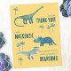 Hora de obrigado dos seus convidados para uma festa de aniversário selvagem! Um monte de dinossauros adoráveis, prontos para personalizar com o nome do seu filho e a mensagem do seu obrigado. Excelente para qualquer garoto ou garota etária. O verso é vazio para sua própria mensagem e apresenta um pequeno Tyrannosaurus Rex. Arte original de Nic Squirrell.