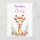 Cartão Postal Festa de Aniversário de Menina Girafa Bebê Doce Fl