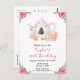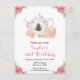 Este convite de aniversário elegante e festivo apresenta um bule de chá e biscoitos de pão de gengibre. Nos cantos estão lindas flores rosa de poinsettia. O texto combina o script manuscrito e as fontes sans serif para uma aparência na moda e moderna. Isto é perfeito para um brunch de Natal ou uma festa de chá.