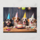 Celebração Colorida de Aniversário Feliz, design decorativo com balões de festa e bolo de aniversário. Quatro cachorros usando chapéus de festa,
