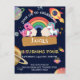 Cartão Postal Festa de aniversário no espaço com arco-íris de di