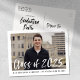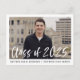 Cartões postais de convite à festa de formatura modernos com a fotografia do formando, em branco, com "Classe 2025" numa camada branca de script de pincel de aquarela. Personalize a frente adicionando o nome do formando e o nome da escola em texto preto. O convite reverte para exibir seu endereço de devolução e detalhes de festa de formatura em texto preto.