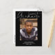 Esse cartão-postal de graduação minimalista apresenta um simples design com roteiro informal. Na frente, o "Formando" é escrito em uma caligrafia casual através do topo, com uma grande foto abaixo. Na parte inferior, adicione o nome do formando, a escola e o ano de graduação. A tipografia é branca contra um fundo preto-colorido. Na parte traseira do cartão postal de formando, você pode adicionar uma mensagem aos destinatários e/ou informações de festa de formatura.