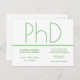 Um convite postal para uma festa de formatura de doutorado. Este convite minimalista é branco e verde. Todas as palavras podem ser personalizadas.