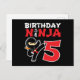 Cartão Postal Festa de Karate Ninja de 5 Anos Crianças 5º Aniver