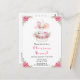 Este convite elegante e festivo para o almoço de festas apresenta uma banca de bolo com biscoitos de gengibre, macarões, doces, cacau quente e bule. Nos cantos estão lindas flores rosa de poinsettia. O texto combina o script manuscrito e as fontes sans serif para uma aparência na moda e moderna. Isto é perfeito para uma festa de café de Natal ou chá.